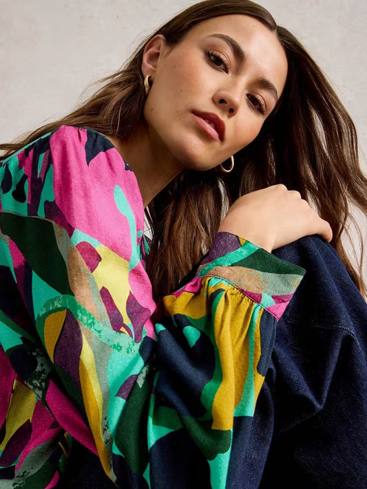 White Stuff Sophie Printed Shirt Black Print and Ivory Multi