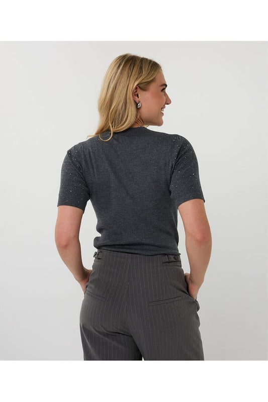 Esqualo Dark Grey Ribbed Top with Studs