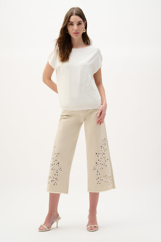 Joseph Ribkoff Boxy Blouse- Lace Embroidery White