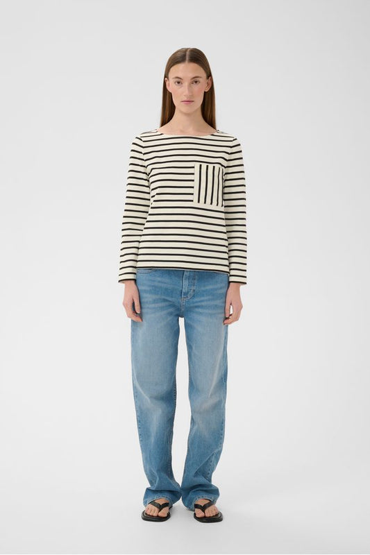 InWear DellaIW T-shirt Black / Whisper White Stripe