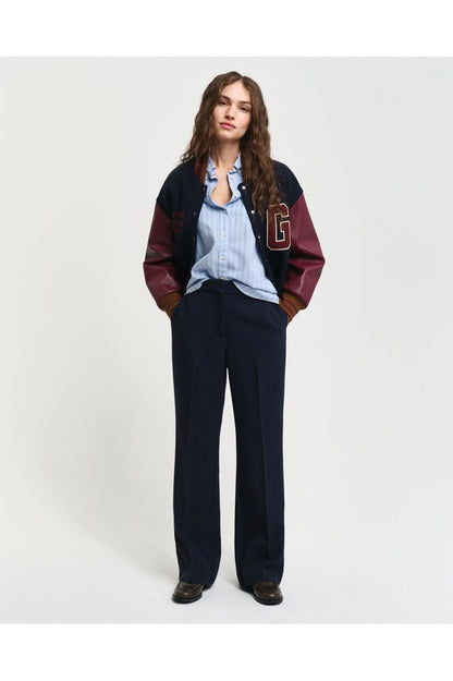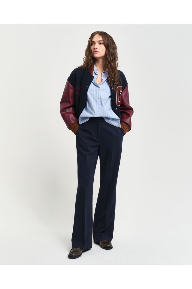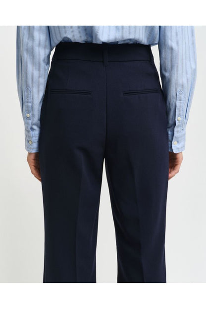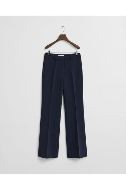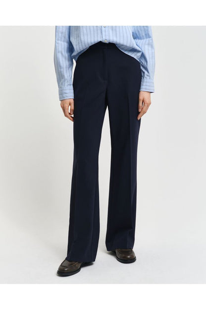 These slim-fitting cigarette slacks from GANT are fashioned with a mid-rise waist and a flared leg for a chic, workwear look. Designed with a touch of comfort stretch, they are equipped with a zip and hook-and-bar closure, press creases, slanted front pocket and back welt pockets. This product is made with recycled polyester, aligned with GANT's sustainability strategy to support circularity.
