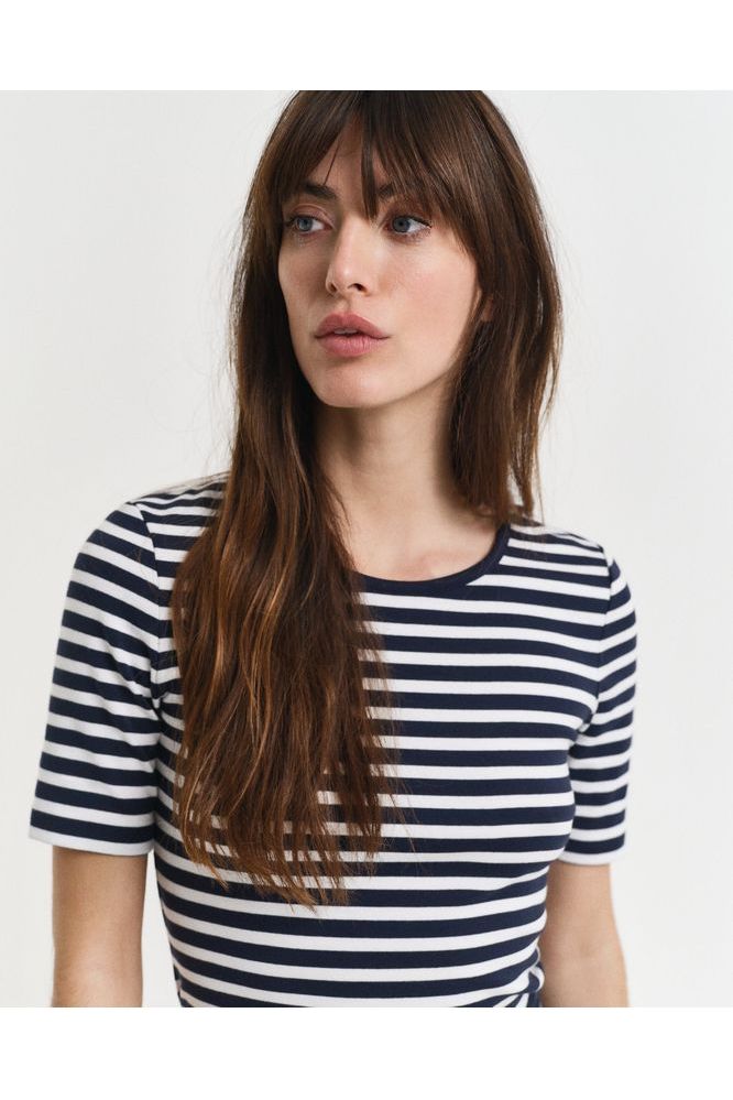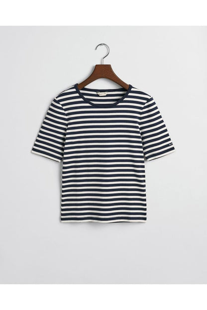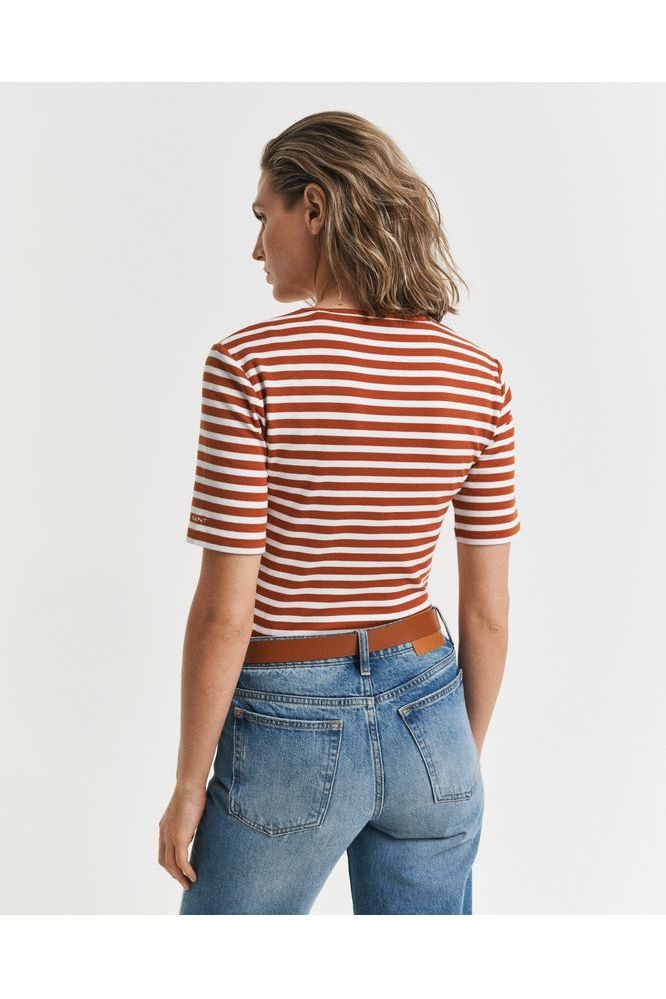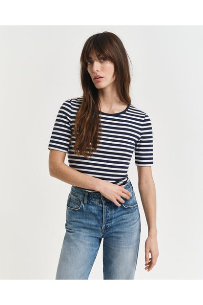 Get ready to stand out in style with the Gant 1x1 Ribbed T-Shirt! This slim fit shirt features bold stripes that will make a statement while the short sleeves keep you cool and comfortable. Upgrade your wardrobe with this must-have piece.