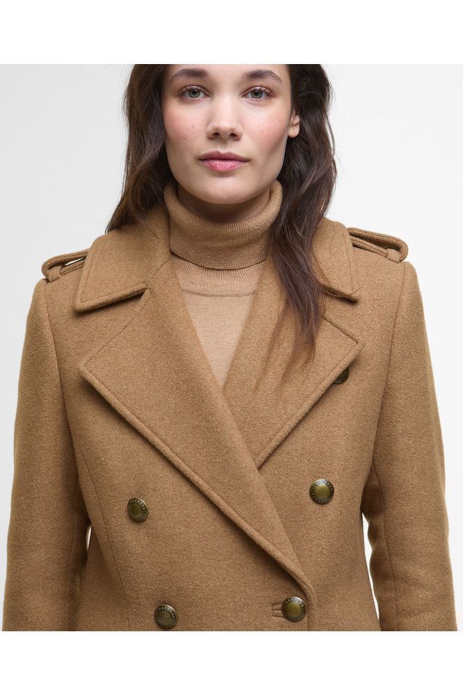 Embrace timeless elegance with the Barbour Cottesmore Jacket in camel. Crafted from thick, high-quality fabric, this long, double-breasted trench coat offers both warmth and style. Its classic design ensures a sophisticated look that complements any wardrobe, making it a versatile choice for cooler days. Elevate your outerwear collection with this enduring piece that combines functionality with refined fashion.