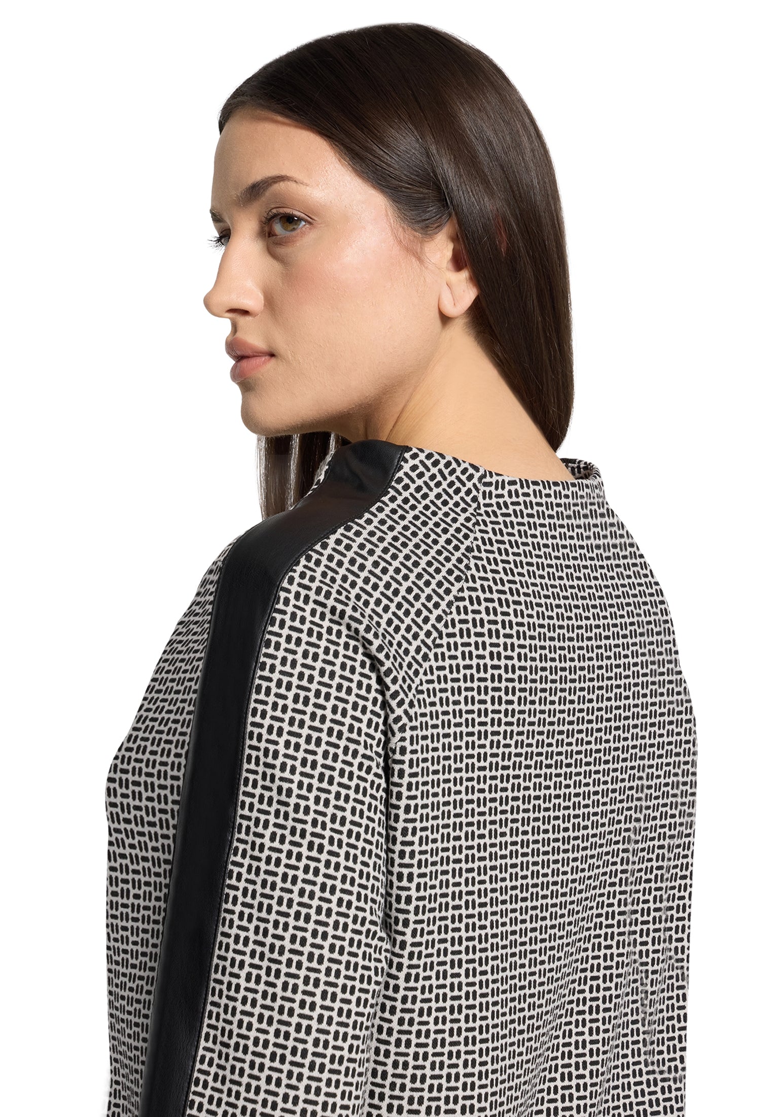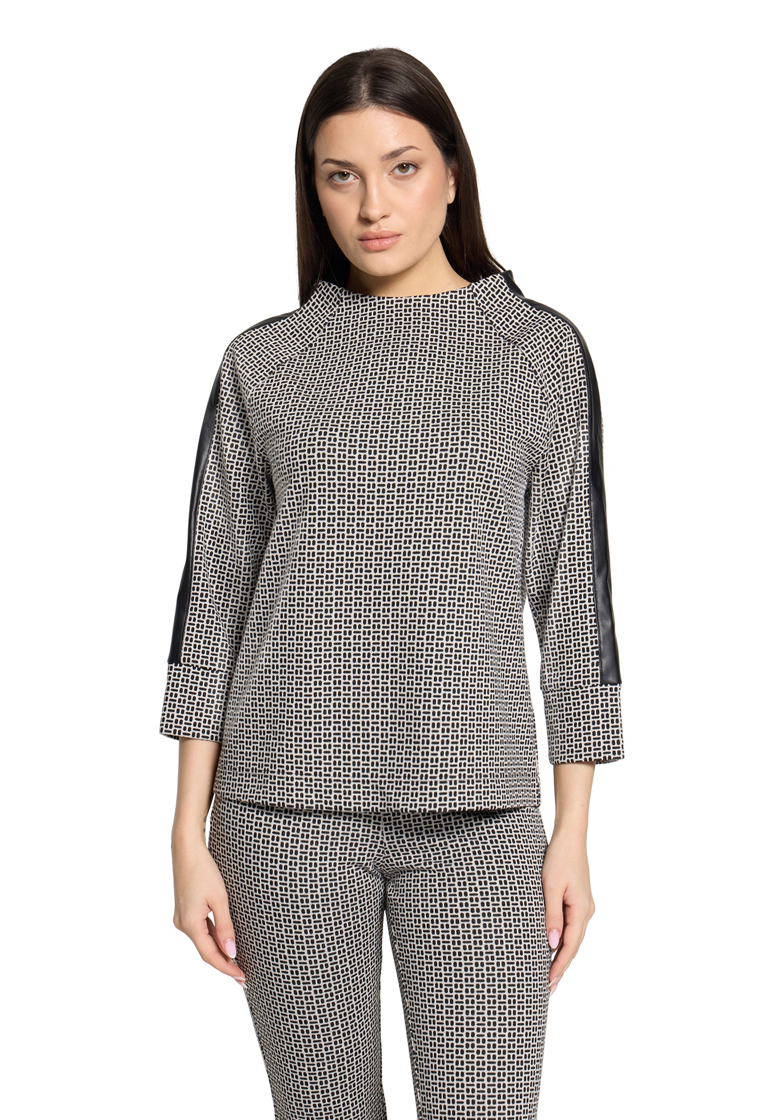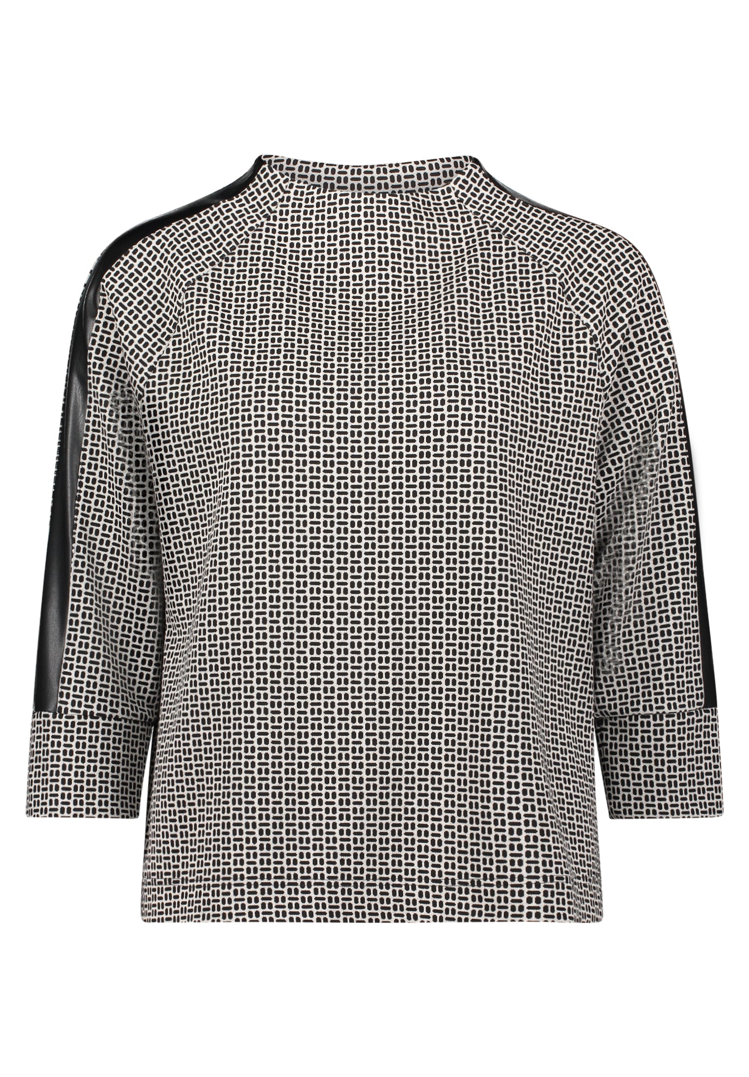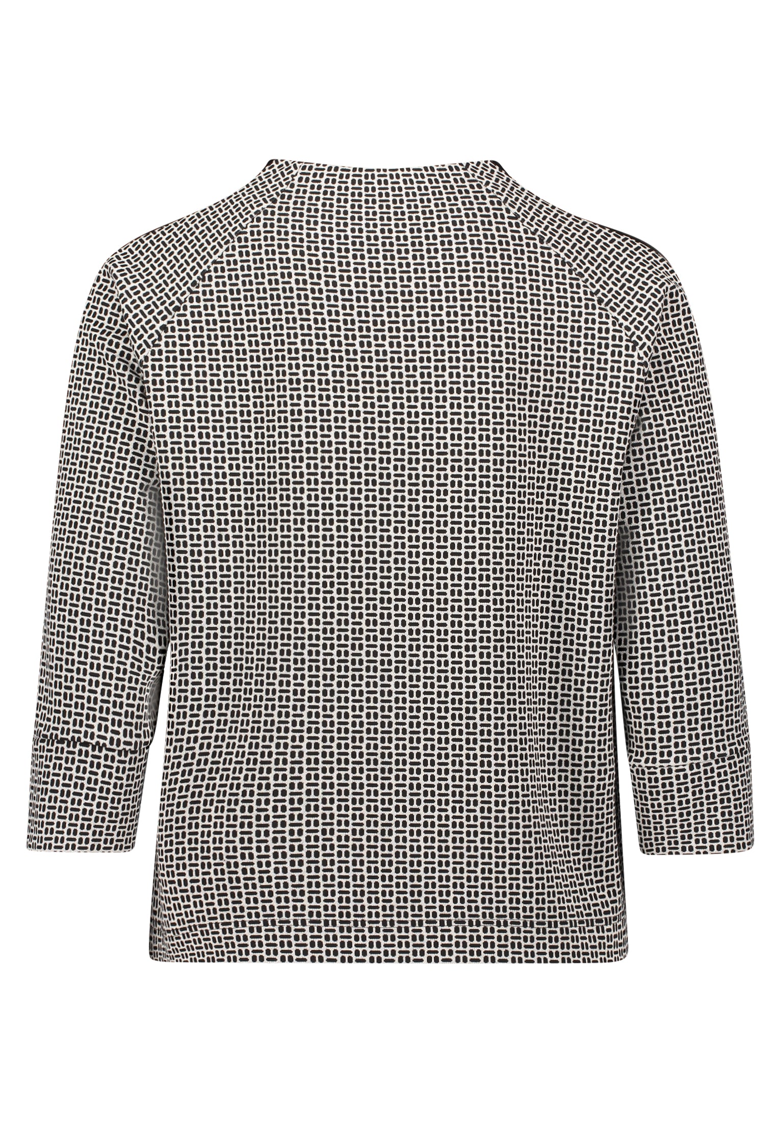 This Betty Barclay sweatshirt combines timeless elegance with everyday comfort. Crafted from soft sweatshirt fabric, it features a refined turtleneck collar and flattering raglan sleeves in a practical 3/4 length. The straight fit silhouette offers a polished, versatile look that transitions effortlessly from casual to smart-casual styling. At 58cm in total length, it provides an ideal proportion for layering or wearing solo. The cream and black colourway adds sophisticated contrast, making it a wardrobe essential for those seeking quality basics with understated style.