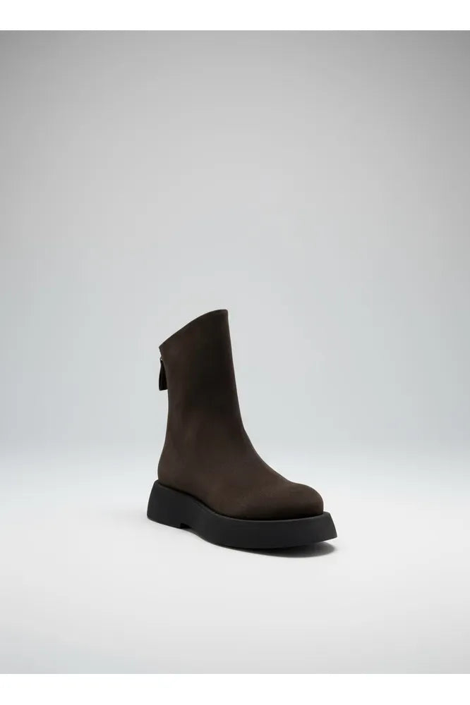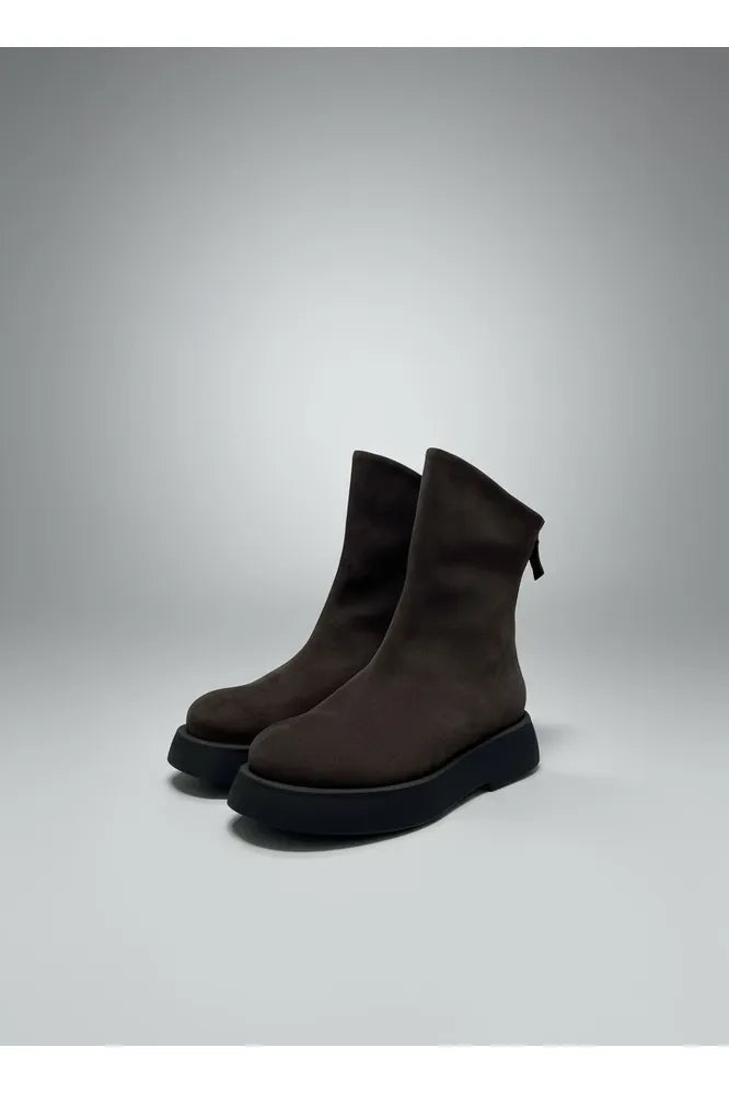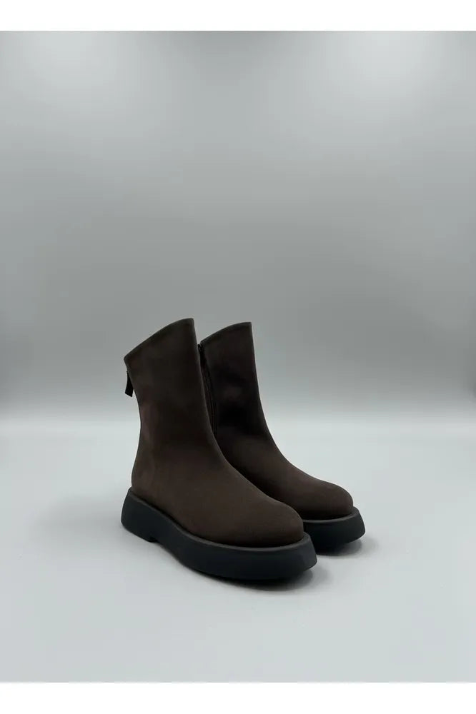 Elevate your footwear collection with these striking brown suede boots, designed for those who appreciate understated sophistication with an edge. The sleek back zip closure ensures effortless styling, while the contrasting black platform and sole deliver a contemporary visual punch that transforms any outfit. The bold platform silhouette adds modern attitude without compromising comfort, making them an essential investment piece for your wardrobe.