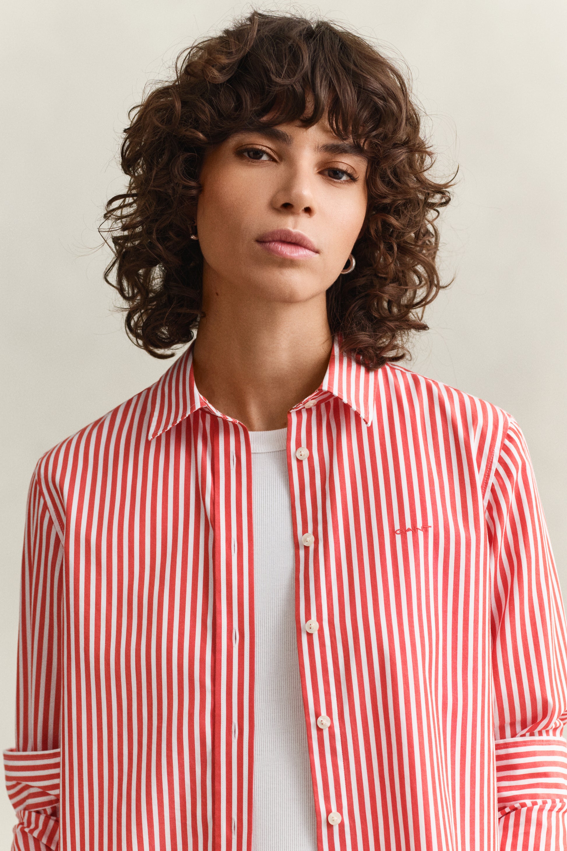 Crafted from cotton poplin, this Gant shirt is the perfect smart casual piece. Designed for a regular fit, it is patterned with yarn-dyed stripes and features a point collar, curved hem and adjustable cuffs. Details include subtle brand embroidery at the chest and a signature Gant locker loop with a box pleat at the back.