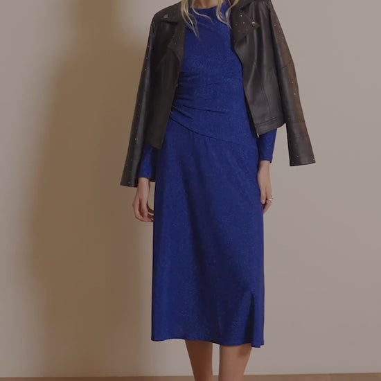 Make a stunning statement with this contemporary fitted jacket, crafted from foiled faux suede for a sleek, modern finish. A classic notched collar and single hook-and-eye closure strike the perfect balance of style and functionality, while shimmering iron-on stones add a touch of glamour.