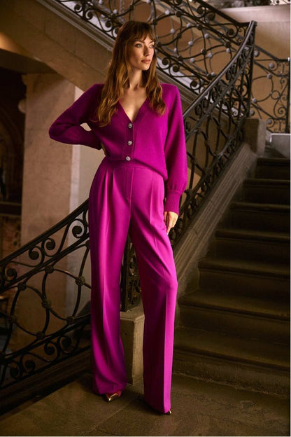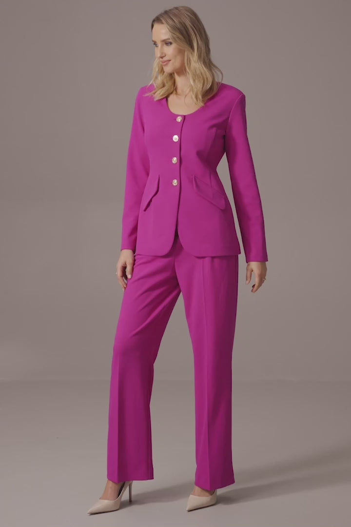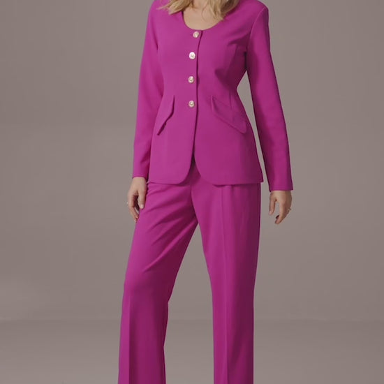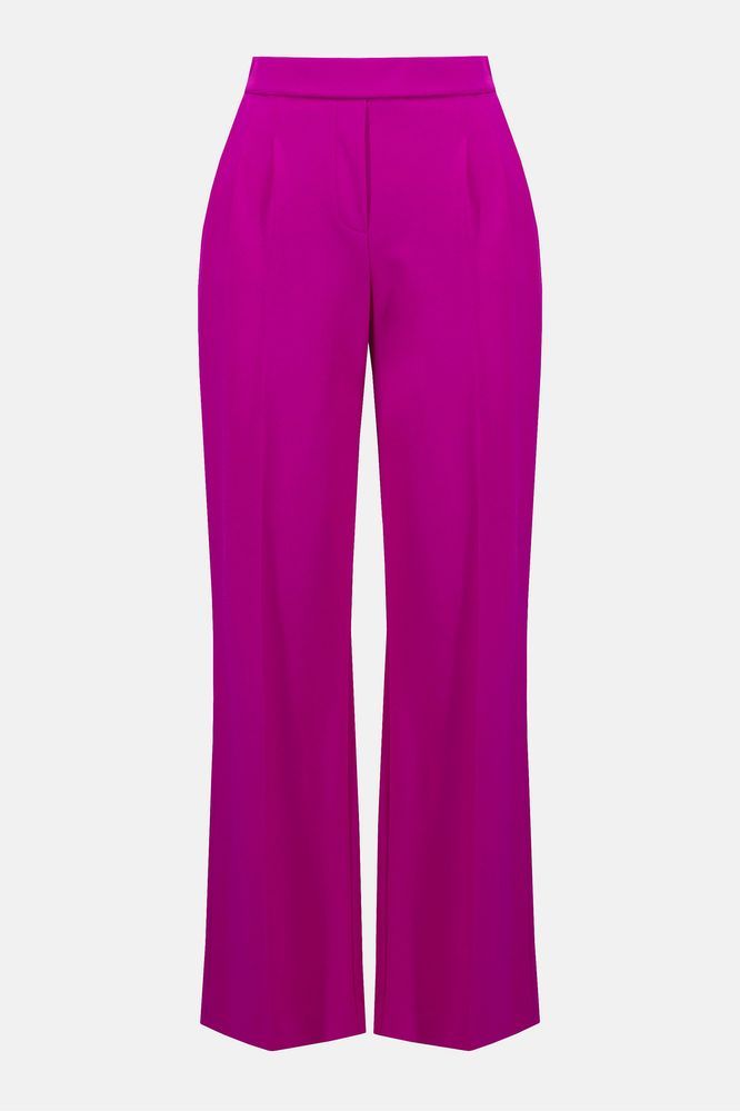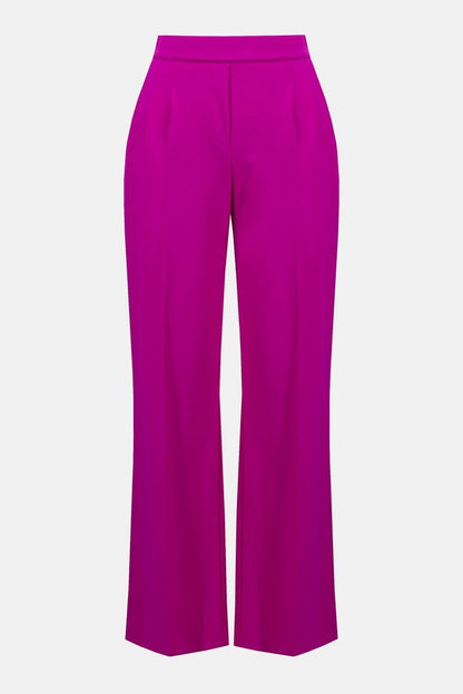 Achieve the perfect balance of tailored style and effortless comfort with these wide-leg pants. Designed with a pull-on waistband for easy wear, they’re crafted from smooth scuba crepe fabric that gently hugs your curves without feeling restrictive. Classic details like front pleats, side pockets, a faux fly, and back darting at the waist enhance the polished look. The covered elastic waistband delivers the illusion of tailoring without any of the bulk, making these pants a chic and versatile wardrobe staple.
