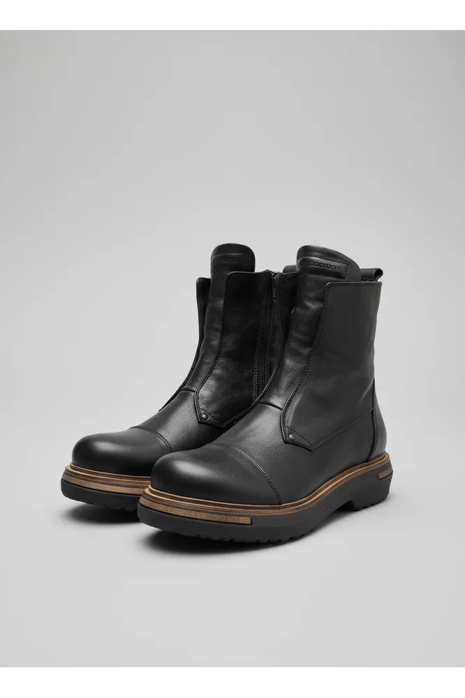 The Patrizia Bonfanti Emi delivers effortless style with its sleek black silhouette and convenient side zip closure. No laces to fuss with—simply slip on and go. Perfect for busy days when you want polished sophistication without the fuss, this bold boot transitions seamlessly from office to evening.