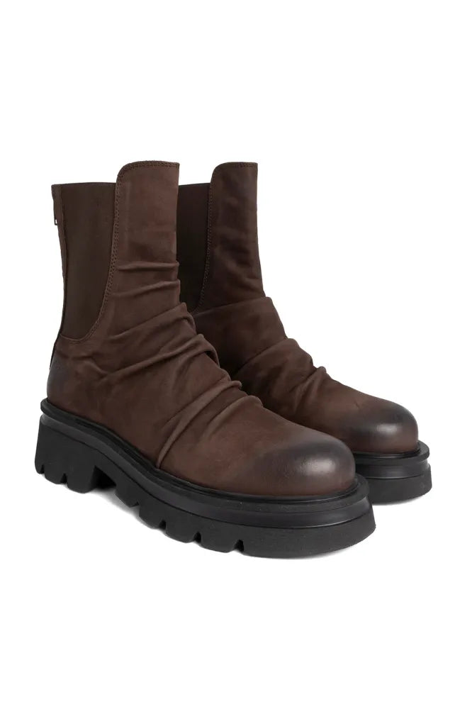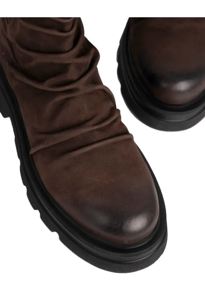 Experience the perfect blend of comfort and minimalist style with the PATRIZIA BONFANTI leather ankle boots. Made from premium brown metallic leather, these combat boots showcase a sleek, streamlined design with an elastic side panel for easy, secure wear. The TOKI boots add subtle elegance and practicality to any outfit, making them a must-have for the season. Elevate your footwear collection with these versatile boots designed to combine fashion and function effortlessly.