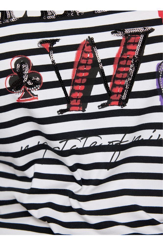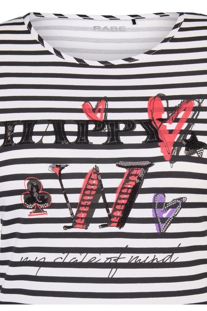 This Rabe stylish round neck T-shirt features 3/4 length sleeves and a classic striped pattern, enhanced by eye-catching wording and detailed design on the front. Perfect for adding a touch of casual sophistication to your wardrobe, it combines comfort with a trendy look that suits any occasion.