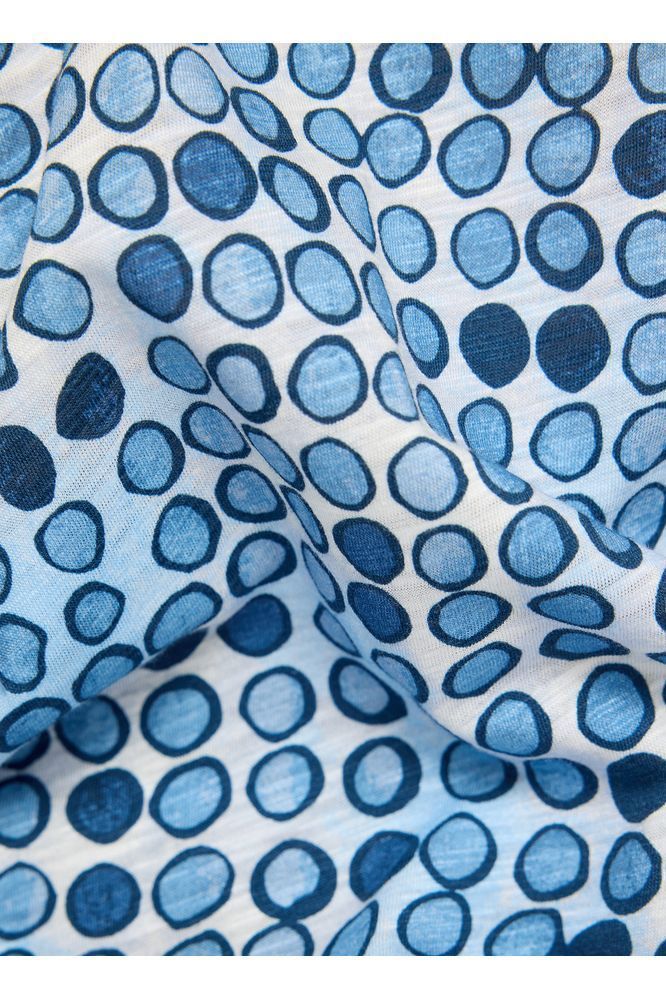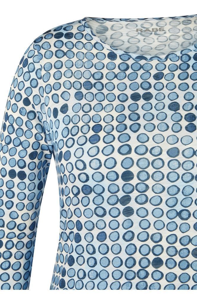 This Rabe T-shirt features a stylish circle pattern in soothing shades of blue, perfectly complementing its open neck design. The 3/4 sleeves offer a comfortable fit that’s ideal for both casual and smart-casual occasions. Elevate your wardrobe with this versatile top that combines modern style with everyday ease.