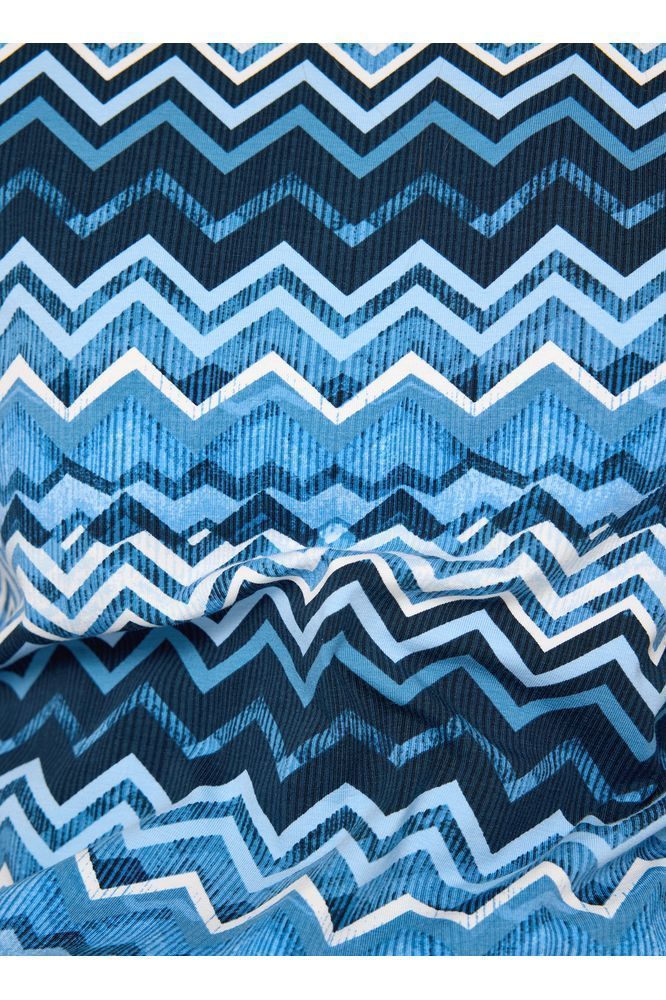 This Rabe T-shirt top features a stylish round neck and flattering 3/4 sleeves, perfect for versatile wear. Its eye-catching zig zag pattern in blue and white adds a fresh, dynamic touch to your wardrobe. Crafted for comfort and style, this top effortlessly elevates casual outfits with a pop of colour and pattern.