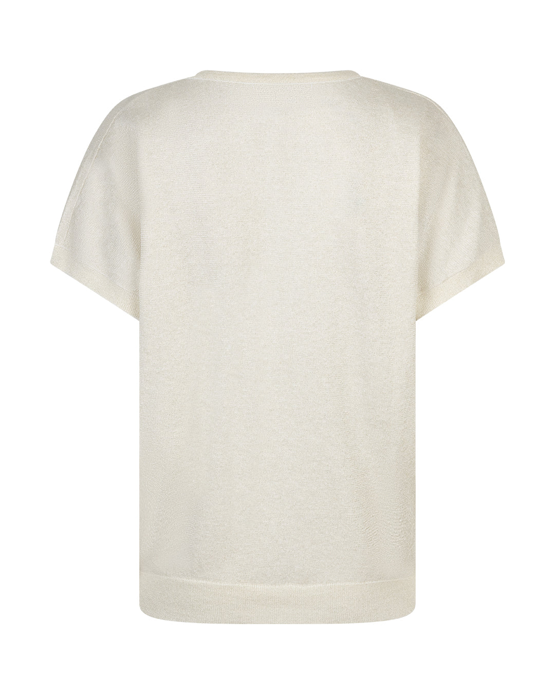 Effortless elegance meets everyday comfort in this soft knit top. The relaxed drop shoulder silhouette creates a flattering, contemporary fit, while delicate short sleeves keep things light and versatile. Subtle sparkle detailing catches the light beautifully without overwhelming your look, making it perfect for elevating casual outfits or dressing down occasion wear. In a sophisticated pearl tone, this piece transitions seamlessly from day to evening. A wardrobe essential that combines understated luxury with wearable style.