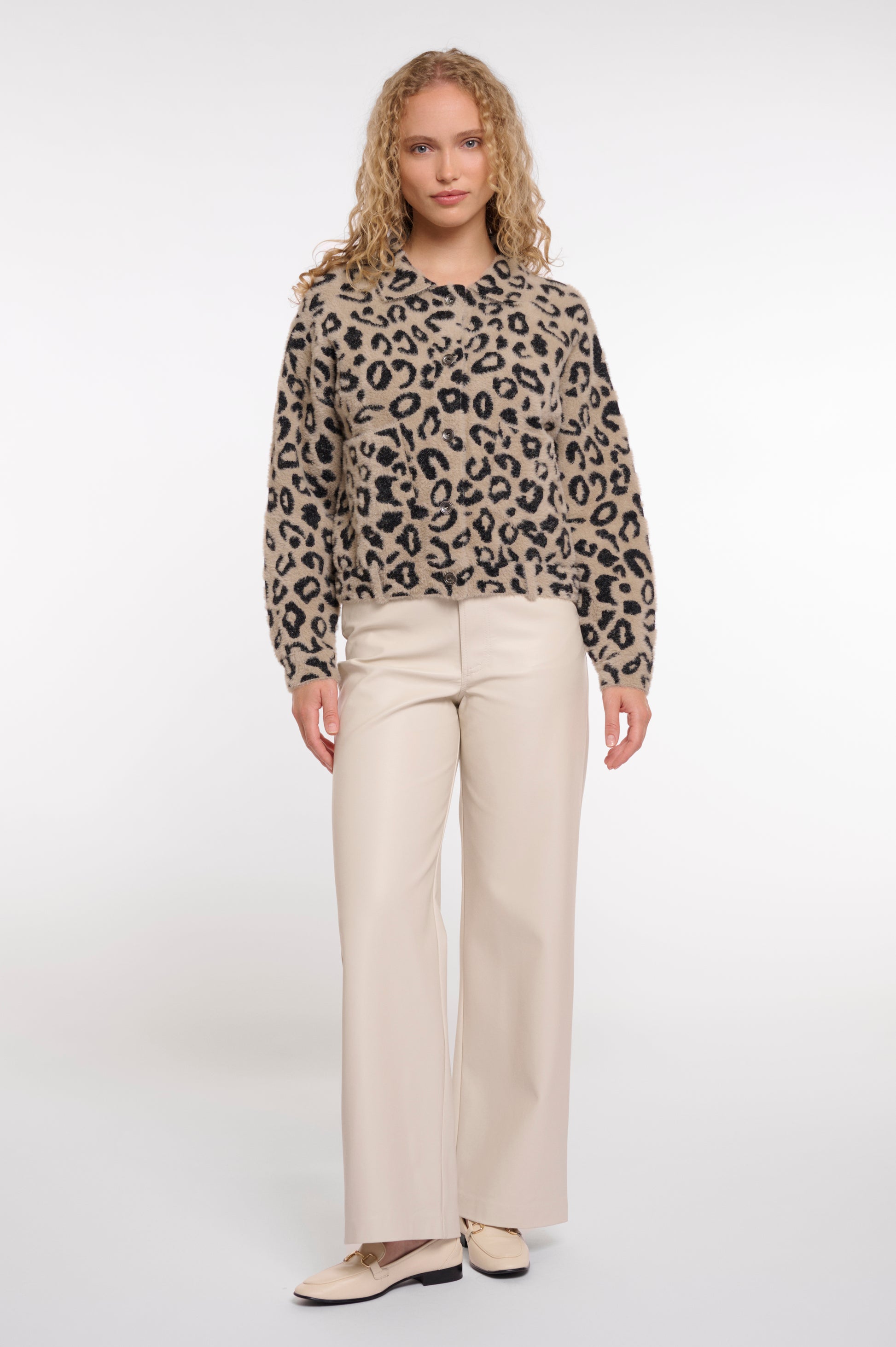 The Rino & Pelle Bubbly Jacket in Desert Leopard is a modern essential that effortlessly elevates any wardrobe. Its relaxed boxy cut offers comfortable, flattering wear, while the distinctive flat collar and decorative back buttons add contemporary edge. Practical front pockets keep your essentials close, and adjustable cuff buttons ensure a customised fit. Perfect for layering or wearing solo, this statement piece brings understated sophistication to casual and smart casual looks alike.