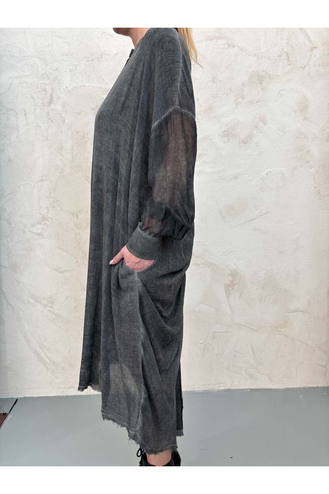 The Sanctamuerte Blouse S174 combines elegance and comfort with its Korean collar and long dropped sleeves. Made from a luxurious blend of viscose/wool and viscose/silk, it features graceful draping and a stylish back center slit. This blouse offers a refined silhouette perfect for making a confident, fashion-forward statement.