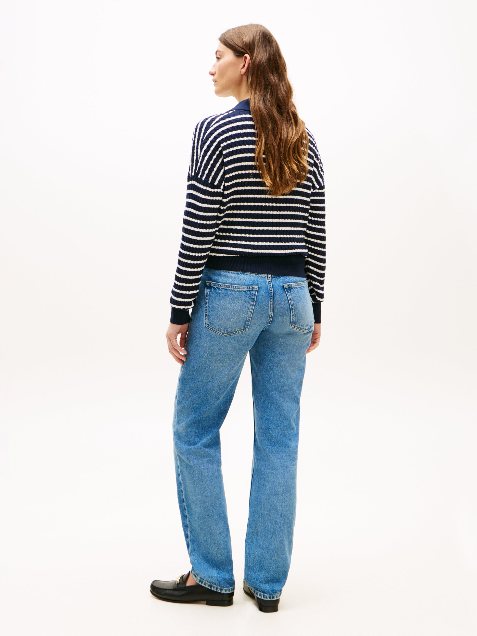 Elevate your casual wardrobe with this Tommy Hilfiger Cable Polo in Navy. Crafted from fine cable knit fabric, this relaxed-fit sweatshirt combines comfort with timeless style. The button fastening and long sleeves offer versatile layering options, perfect for transitioning between seasons. Whether you're dressing down for the weekend or adding polish to smart-casual looks, this piece delivers effortless sophistication. A wardrobe essential that works as hard as you do.