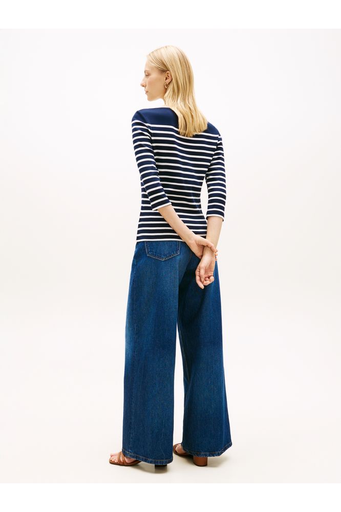 Classic elegance meets everyday versatility with this Tommy Hilfiger Cody boat-neck top. The refined navy hue pairs effortlessly with your existing wardrobe, while the slim fit flatters your silhouette. Three-quarter sleeves offer the perfect balance between coverage and breathability, making it ideal for layering or wearing solo across seasons. A timeless staple that transitions seamlessly from office to weekend, this piece delivers understated sophistication without compromise.