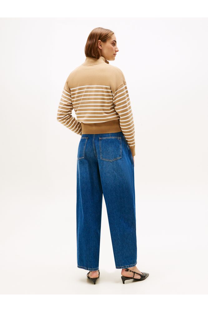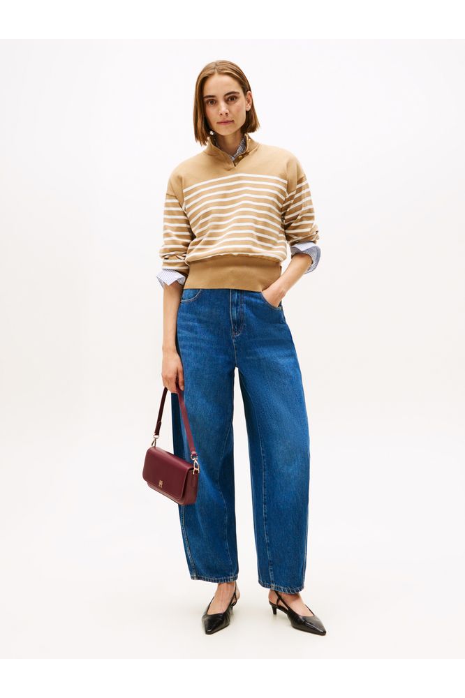 Experience timeless elegance with the Tommy Hilfiger Jersey Beige Pullover Sweater featuring a chic gold button mock neck. Crafted from soft, breathable cotton, this sweater offers effortless comfort while the gold button detail adds a touch of refined luxury. Its versatile beige shade makes it easy to pair with any outfit, perfect for elevating your everyday style with subtle sophistication.