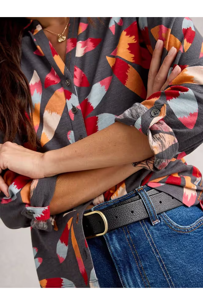 The White Stuff Annie Jersey Shirt combines comfort with contemporary style, featuring a striking abstract print that instantly elevates any casual wardrobe. Crafted from soft jersey fabric, this versatile piece works beautifully layered or worn solo, making it perfect for effortless everyday wear. The eye-catching design ensures you'll stand out while maintaining the relaxed fit that jersey knit is known for. Whether you're dressing up a simple outfit or keeping things laid-back, this shirt delivers both visual impact and wearable comfort that you'll reach for again and again.