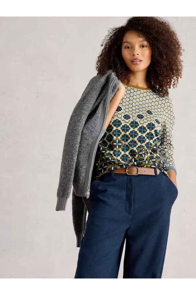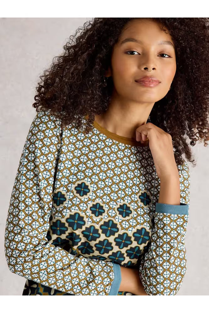 Elevate your everyday wardrobe with the White Stuff Clara Tee—a timeless long-sleeved crew neck essential that effortlessly combines comfort with style. Featuring a stunning print design, this versatile piece works beautifully layered or worn solo, making it the perfect go-to for any season. Quality crafted and endlessly wearable, it's the one piece you'll reach for again and again.