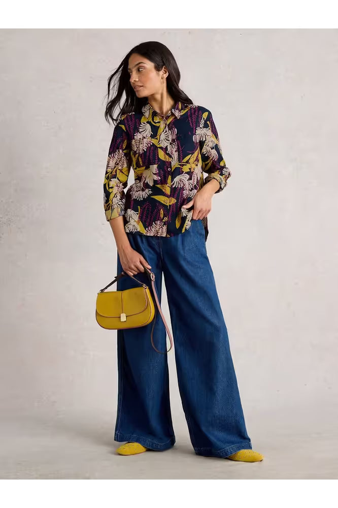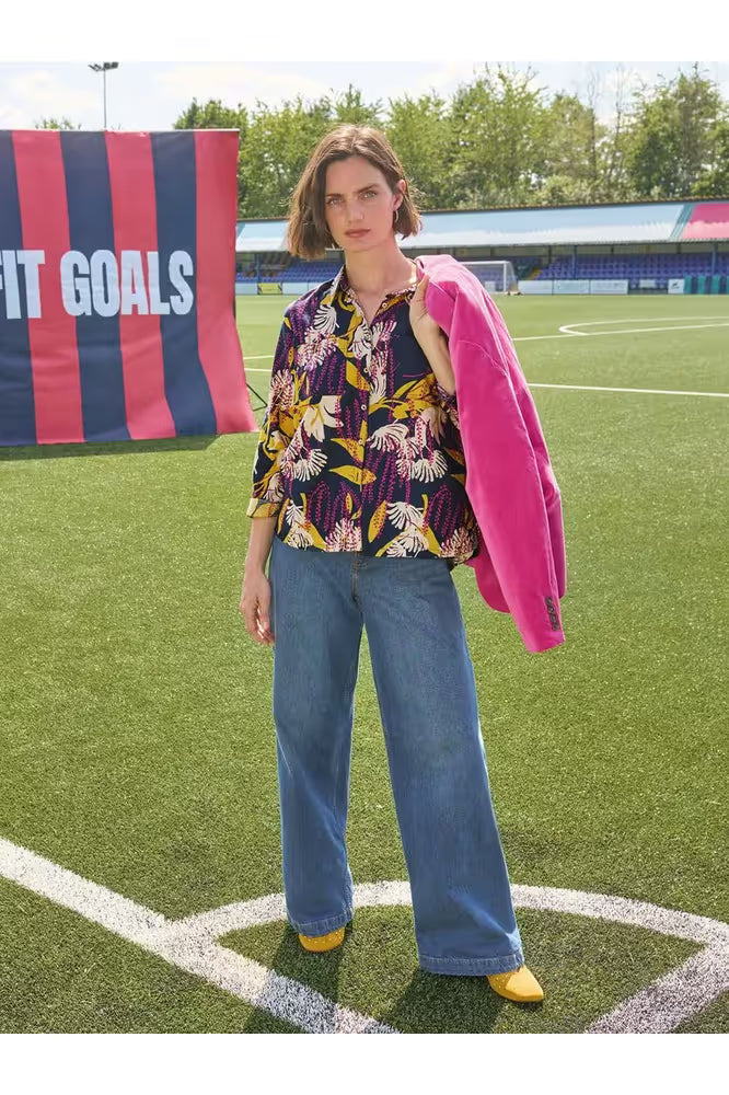 The Sophie is the button-up shirt reimagined. This soft cotton piece features a striking navy print that transforms an everyday essential into a statement piece. Clean lines meet bold design, delivering the instant polish your wardrobe has been waiting for. Effortlessly versatile, it layers beautifully or stands alone as your go-to for elevated casual style. The Sophie proves that sometimes the perfect print is all you need.